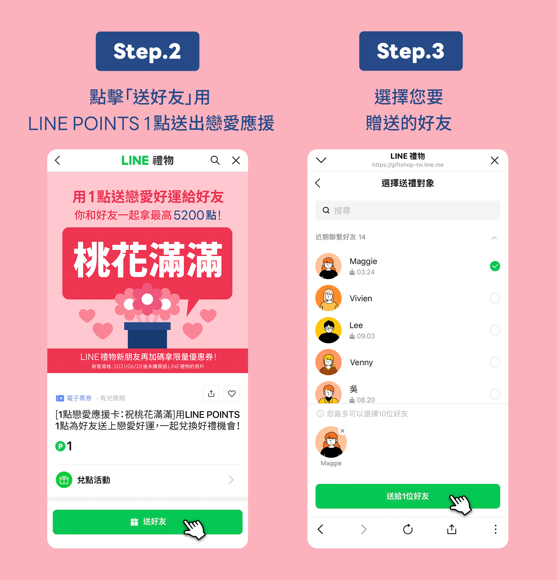 2. 送禮者依送禮次數,最高可獲得9次好禮機會;收禮者依收禮次數,最高可獲得的好禮機會次數無上限。