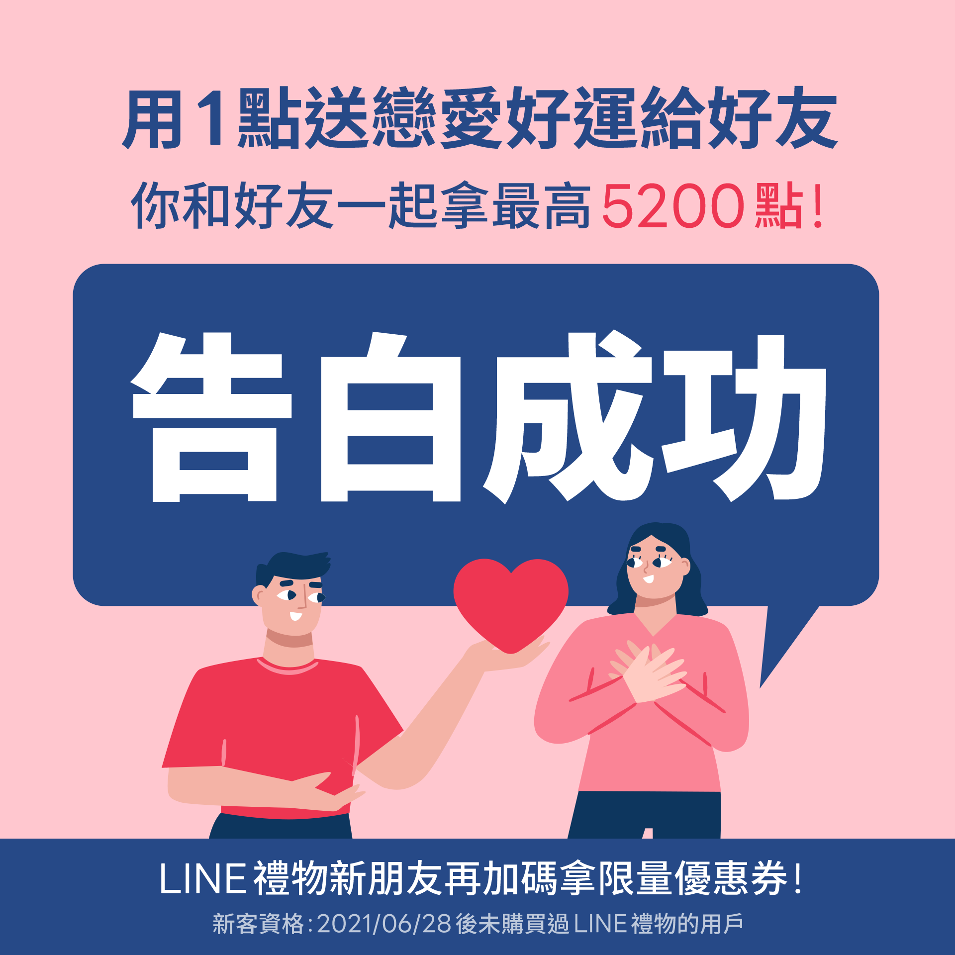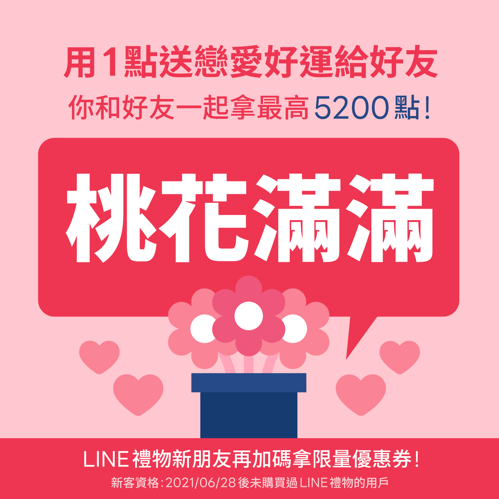✦LINE禮物驚喜優惠商品賣場 獎項說明 獲得此項好禮後,「LINE禮物」官方帳號將會傳送驚喜優惠商品連結,請點擊連結至LINE禮物平台購買,購買期限依各項目設定為準,逾期點擊連結或未於期限內購買則視同放棄。 【LINE禮物新客送禮者加碼獎項】 若送禮者為LINE禮物新客,有機會再獲得LINE禮物優惠券,獎項如下: ◎ 新朋友戀愛應援$30優惠券(限量20,000份) ✦LINE禮物優惠券 獎項說明 本活動獲得之LINE禮物優惠券,設有適用日期、訂單金額門檻、適用商品、排除商品等限制,使用前請留意並參閱每張LINE禮物優惠券的使用限制。購買期限依各項目設定為準,逾期點擊連結或未於期限內購買則視同放棄。